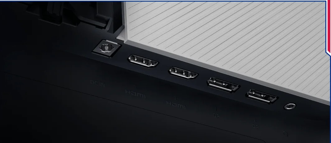 Для подключения предусмотрены HDMI и DisplayPort, что позволяет без проблем использовать монитор с современными видеокартами и ноутбуками. Также есть выход на наушники, что удобно при использовании консоли или ПК без отдельной акустики. Встроенных динамиков и USB-хаба здесь нет — монитор сделан с акцентом на изображение и игровые характеристики. В комплекте поставляются адаптер питания и кабель DisplayPort, поэтому устройство готово к использованию сразу после установки.